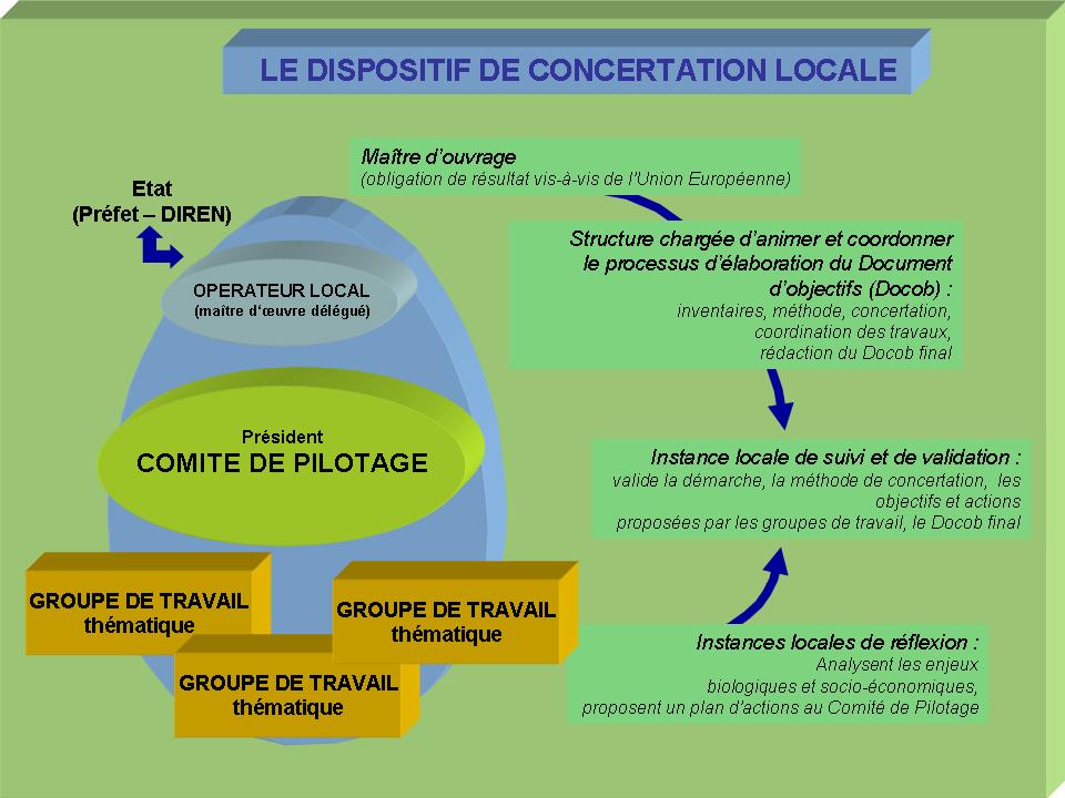 Pour chaque site du réseau français, les acteurs locaux élaborent un Document d’Objectifs (« DOCOB ») : c'est un véritable plan d’action local en matière de développement durable.